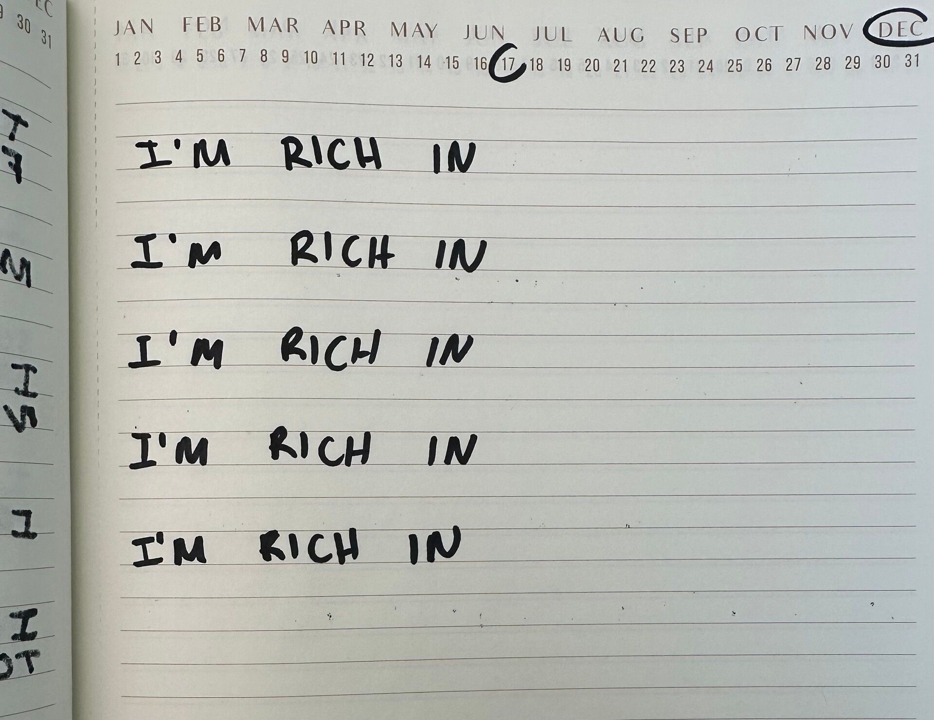 Today’s affirmation was going to be about something else, but this morning Rich Spirit by Kendrick Lamar came on and inspired today’s affirmation: “I’m rich.”